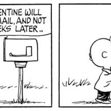 コミック『ピーナッツ』に登場するさまざまな手紙のシーン。実はスヌーピーが飼い犬として正式に決まった報告も、飼い主のチャーリー・ブラウンが文通友達に送った手紙から読み取れます!