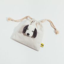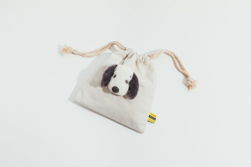 スヌーピーのマスコットが付いたかわいい巾着は、小物を入れて持ち歩くのに丁度よいサイズ。素材感も楽しめる一品だ。