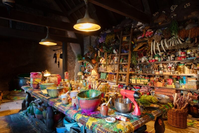 広い公園内には「ジブリの大倉庫」「青春の丘」「どんどこ森」「もののけの里」と、これまでに4つのエリアがありました。そして3月16日に新エリアとなる「魔女の谷」が誕生。『魔女の宅急便』の「オキノ邸」や「グーチョキパン屋」、『ハウルの動く城』の「ハウルの城」や「ハッター帽子店」、『アーヤと魔女』の「魔女の家」といったジブリ映画に登場する二次元の建物を、立体物として再現。
