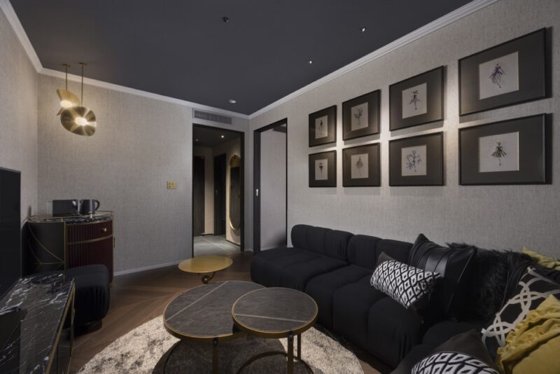スイートルームはミニシアターのように落ち着いた雰囲気です。