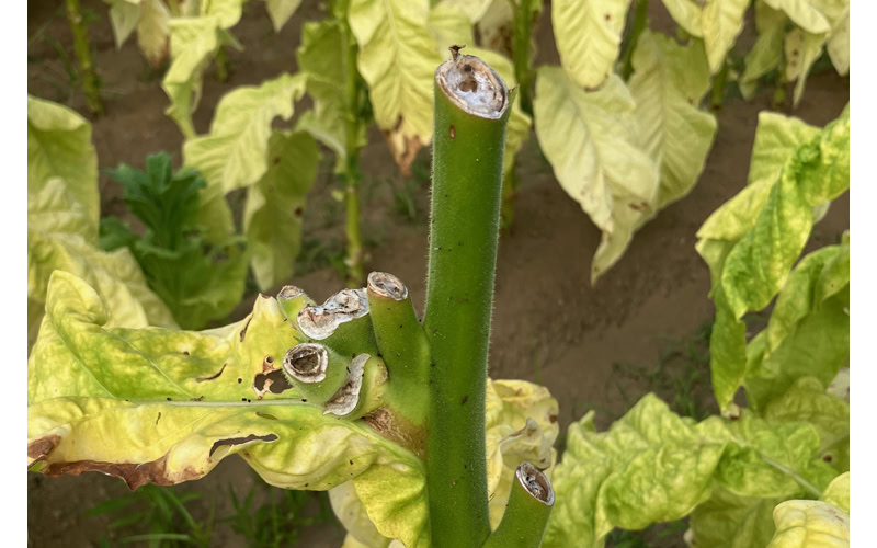 また、葉に十分な養分や水分を行き渡らせ、その成熟を促進させるために、花(を含む上部)を切り落とす「心止め」もこの目で見ることができました。
