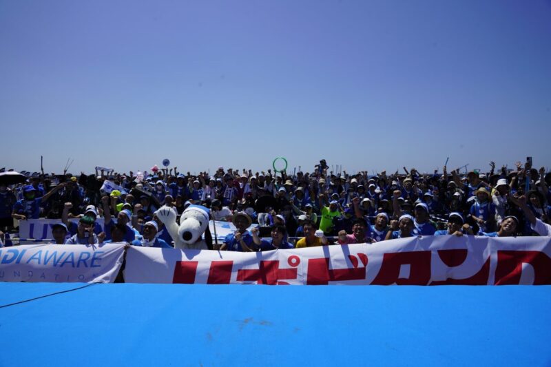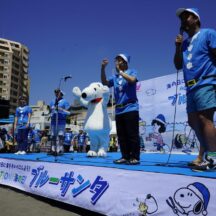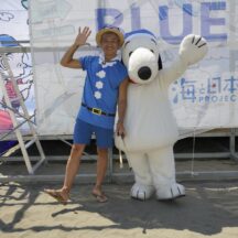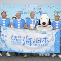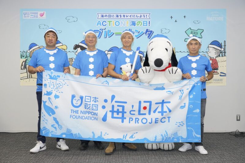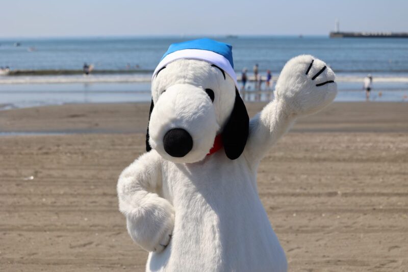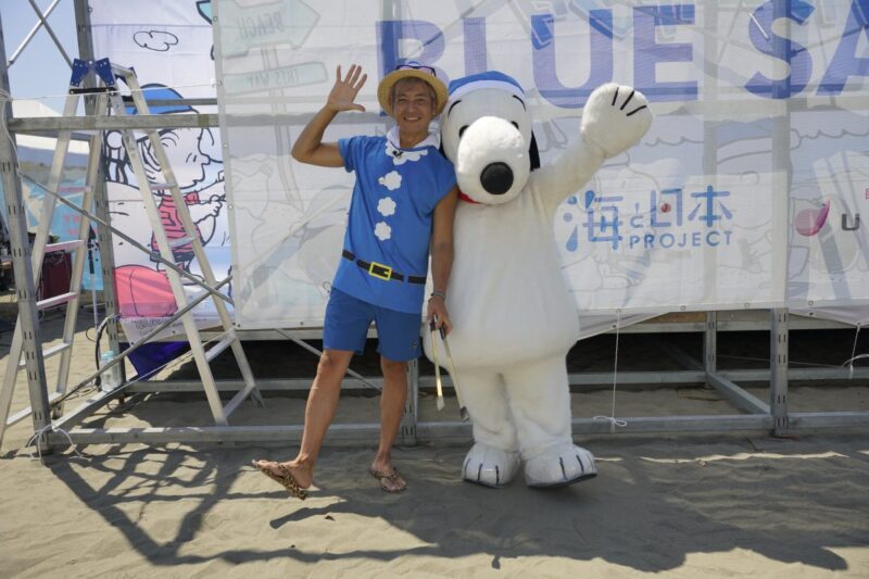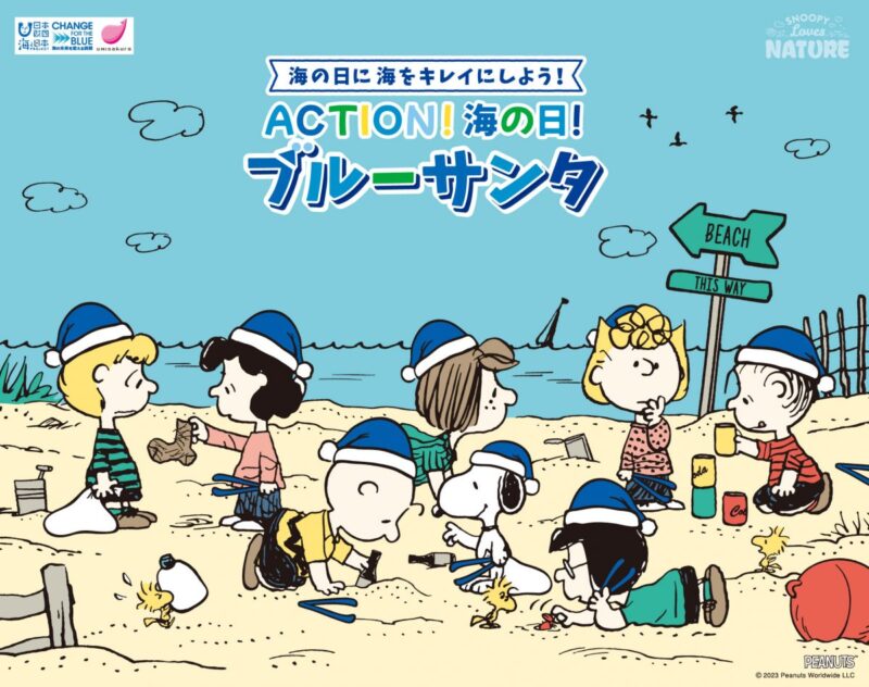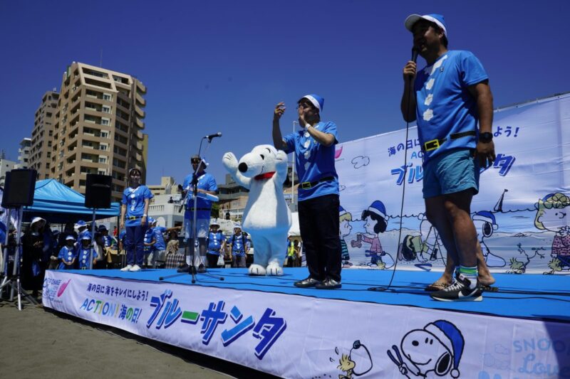 7月17日の海の日に、ビーチクリーンイベント「ブルーサンタ2023@江の島」が開催されました。会場にはスヌーピーが登場し、参加者たちと一緒に海岸のごみひろいを行い、海をきれいにするとともに、海にゴミは行かせないことをアピール。