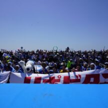 最後は参加者と一緒に記念撮影。「海にゴミは行かせない!」と元気にアピール。