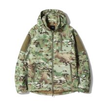 米軍の特殊部隊員が着用するアウトドア・タクティカルウェアをモチーフに、ブラックとコヨーテは70デニールの撥水性リップストップナイロン生地、カモとゴーギャン柄は軽量で柔らかく頑強な撥水性ナイロンタッサー生地を採用。内部には、かつて米軍の要請により研究開発された、保温中綿材プリマロフトを170g/㎡内包している。