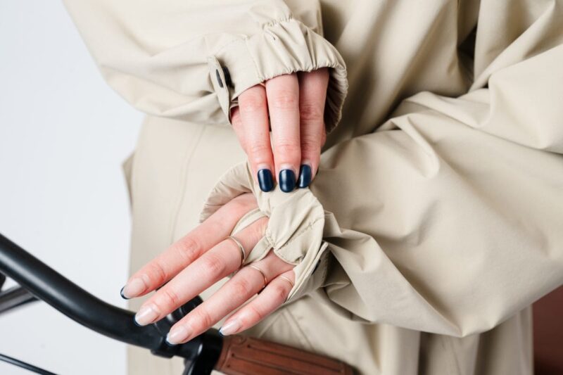 袖に中指ループを搭載し、腕周りのズレを防止。ボタンで手首を止められるようになっているので、雨の侵入を防ぎます。