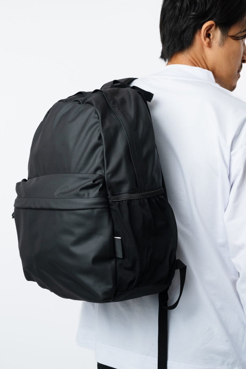 どんなコーディネイトにも合わせやすく、ジェンダーレスで使えるシンプルなデザインのデイパックもラインナップ。防水コーディングが施されているので、書類やPCなどの大事な荷物が雨で濡れる心配はありません。