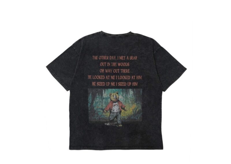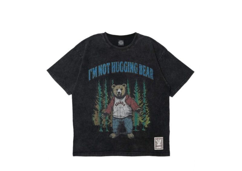 森をさまよう熊は、〈エグザンプル〉のアーカイブアイテムにも度々登場している“BB BEAR”をフィーチャー。バーシティジャケットとデニムパンツを着用するベアがストリート感を増幅させる。