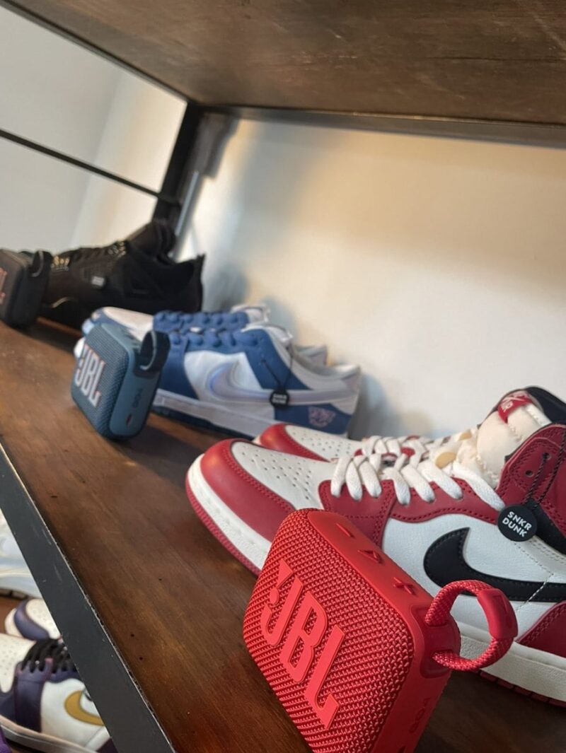 キャンペーン第1弾では、新製品国内最大級のスニーカーアプリ〈スニーカーダンク〉とのコラボレーションを実施し、抽選でレアスニーカーが当たるプレゼントキャンペーンを開催!新製品の『GO 4』/『CLIP 5』と、その色に合わせたレアスニーカーがスピーカーとセットで当たります!