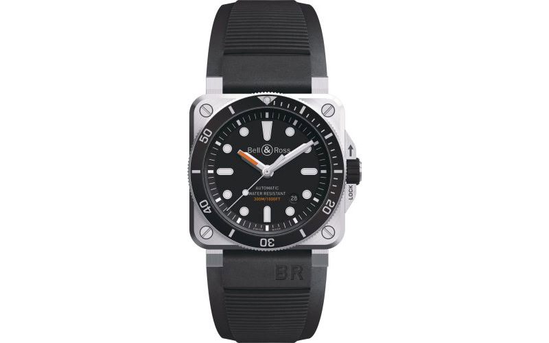 ベル&ロスがダイバーズを手掛けると? の解になった今作。珍しいクッション型でありながら、逆回転防止ベゼルや視認性の高さ、防水性能の高さなど水中環境に適応した機能を備えており、プロダイバーからも信頼を得ている。ケース径42mm、自動巻き、300m防水。