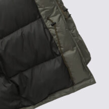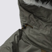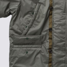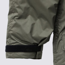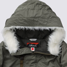 フード内部にもダウンを封入し、極寒地対応の高い防寒性を確保した「3LAYER DOWN N-3B JACKET」。ファー部分にはホワイトのフェイクファーを採用し、スナップボタンで脱着可能な2WAY仕様となっています。裾の内側に紐が通され、絞ることで冷気の侵入を防ぎ、保温性を高める効果を発揮。