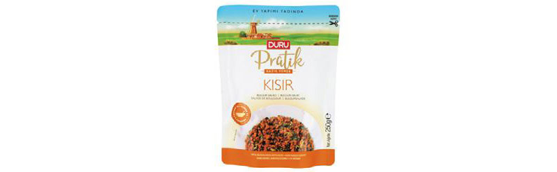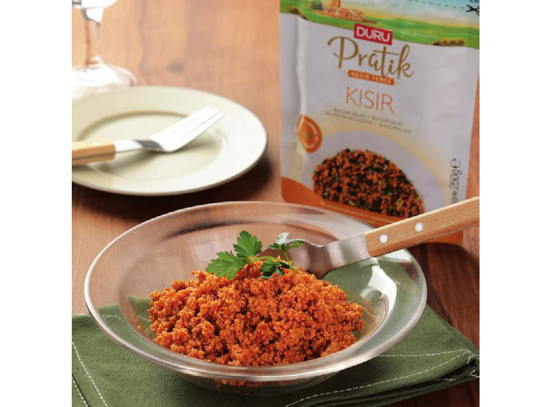 クスルは、小麦をそのまま湯通しして挽き割りしたブルグルを、野菜やスパイスと一緒に混ぜ込んだサラダで、トルコの伝統的な家庭料理。袋から取り出してそのまま食べられるのでお手軽。