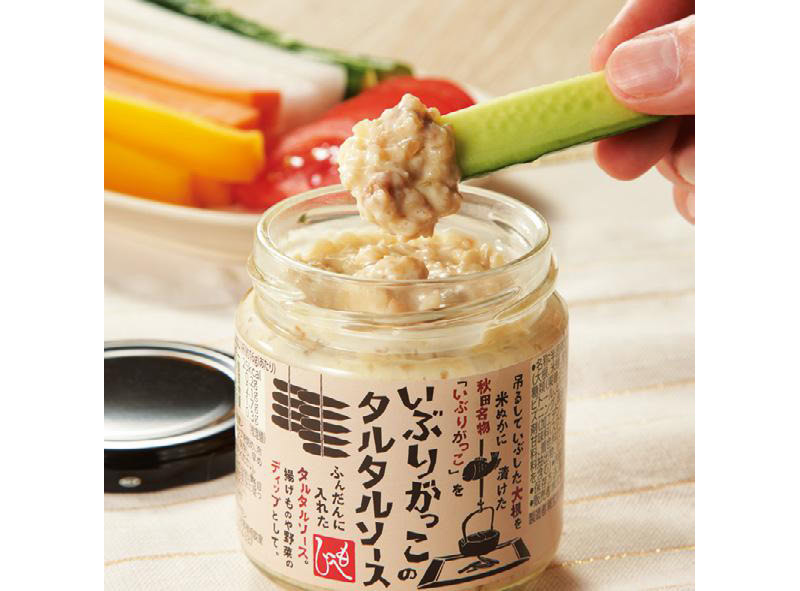 いぶりがっこは吊るしていぶした大根を米ぬかに漬けた秋田の郷土料理。これをふんだんに入れたタルタルソースはサラダやフライにかけたり、温野菜のディップにもしても◎。