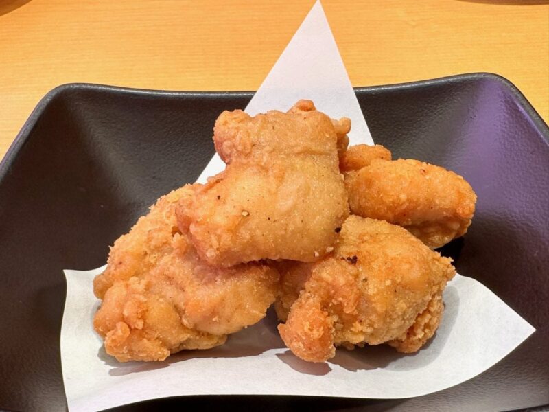 スシローでフライドチキンがたべられる! ジューシーな鶏もも肉の旨み、オリジナルスパイス、薄い衣と、3拍子揃った逸品。注文が入ってから揚げるのもポイント。