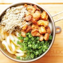 外カリカリで中プルプルな油かすの独特な食感を楽しみ、スープも最後の一滴までじっくりと味わえる「かすうどん」は大阪・庶民の味。
