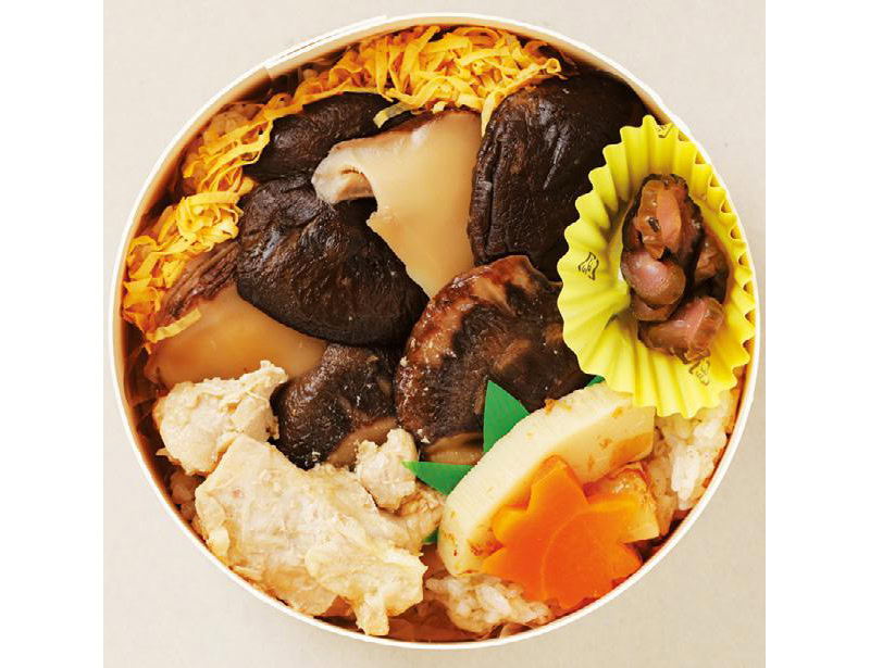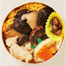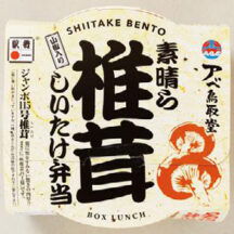 大きさにびっくりする鳥取産原木栽培のジャンボ椎茸をふんだんに使っているヘルシー弁当。椎茸は食物繊維、ビタミン、ミネラルなどを豊富に含み低カロリー。