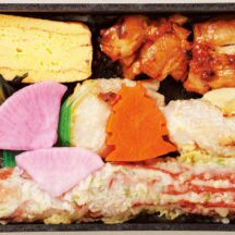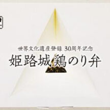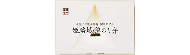 世界文化遺産登録30周年を記念し、開けると飛び出す楽しい仕掛けのお弁当。鶏肉の照り焼きと味噌焼き、ちくわの磯辺揚げのほか、姫路城型の人参で彩りアップ。