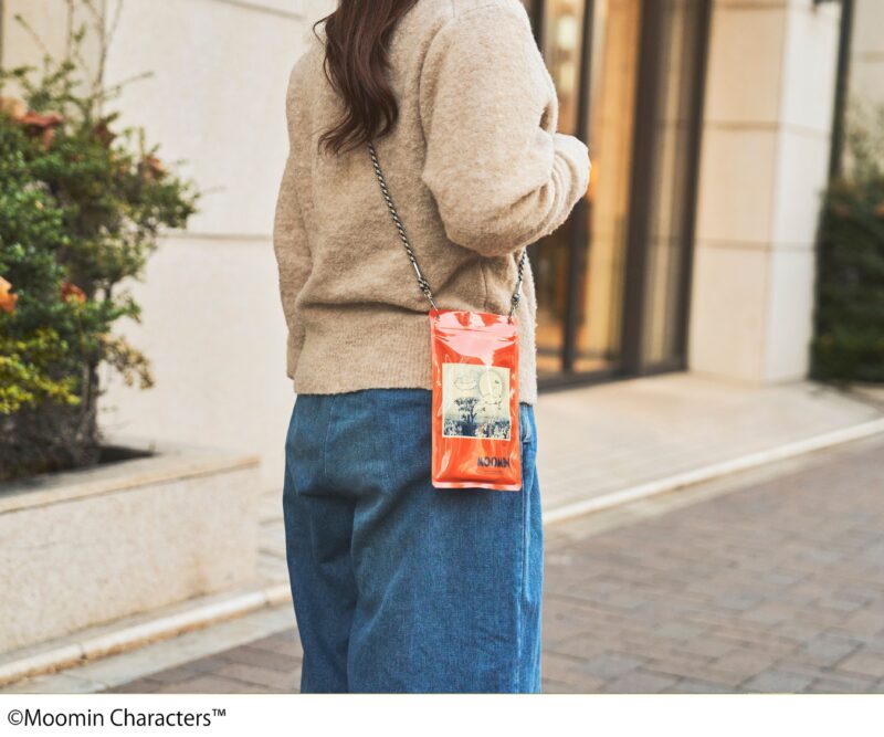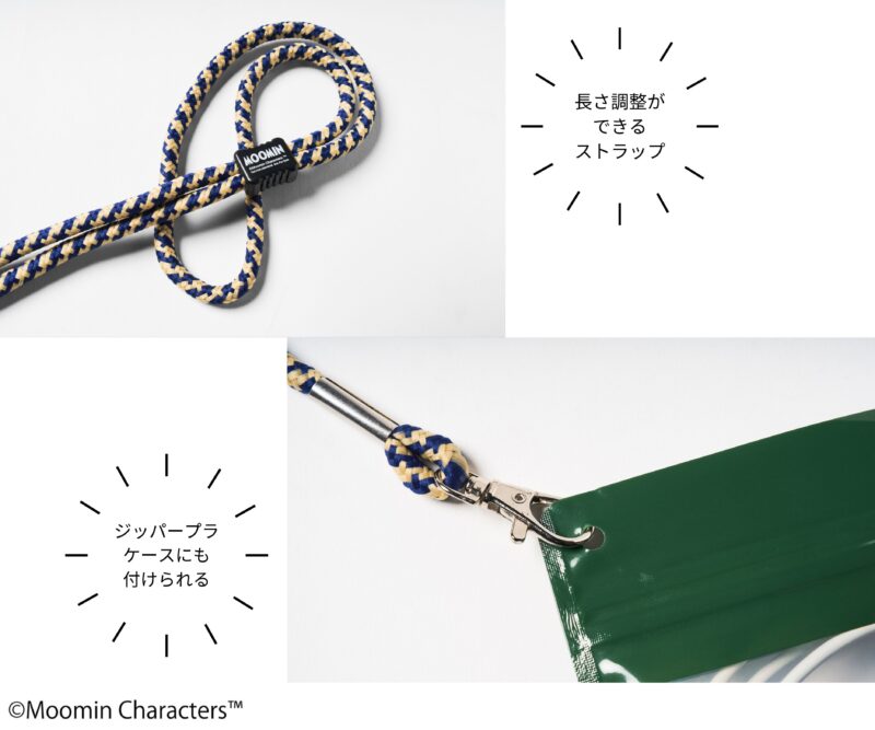 さらにさらに! 今回はムーミンのロゴ入りでスマホケース用の、スマホが斜めがけできる挟み込みタグホルダーが付いてきます。お気に入りのスマホケースに入れて、ストラップをつければスマホストラップとしても使用できます。