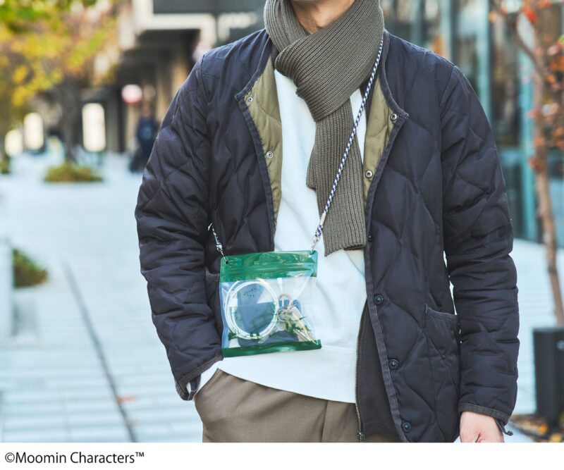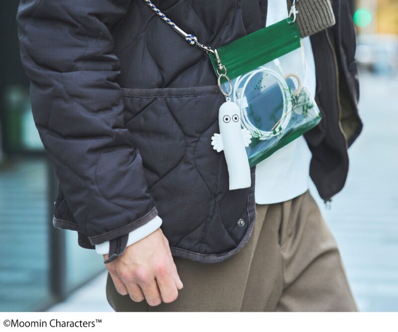 ショルダーストラップにニョロニョロのマスコットキーホルダーをくっつけたら、スタイルが完成します。もちろんお気に入りのバッグにつけたり、複数あつめて並べたり、楽しみ方も広がります。