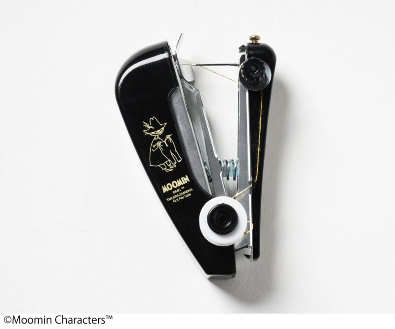 ハンディ・ミシンにはなかなかない、スタイリッシュなブラックのボディに、スナフキンのアートがデザインされています。