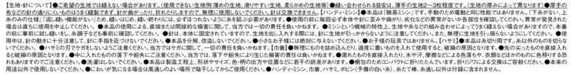 ・サテン、レースなどのほか、薄めの生地や、柔らかめの生地はうまく縫えない場合があります。