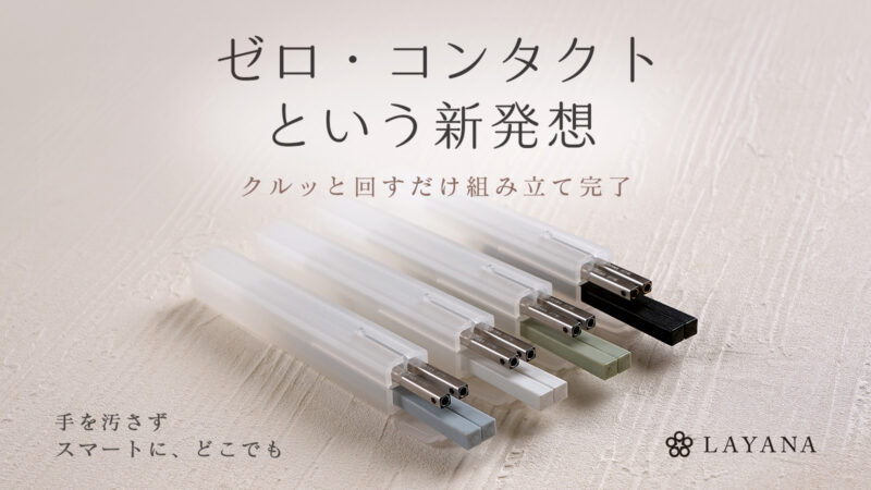 箸先にも持ち手にも直接触れることなく組み立てが完了するゼロ・コンタクトの箸が「LAYANA TAHASI」。箸先には医療用メスにも使われる高耐食素材「316ステンレス」を採用しています。だからサビやニオイ移りの心配がなく、衛生的で長く愛用できる点が大きな特徴となっています。