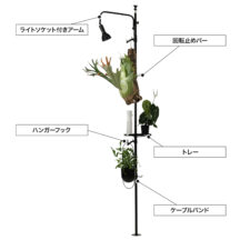 10センチの隙間があれば設置できるからといって、「我が家には、そのちょっとした隙間が陽の当たらない場所にしかない!」という人だっているはず。でも安心してください。「ビザールプランツポールハンガー LPA-P2200」は、市販の育成ライトを取り付けられる電気ソケットも付属するんです。だから陽の当たりを気にする必要もなく、家中どこでも好きな場所に植物を飾ることができ、その植物を健やかに育てることができるのです。