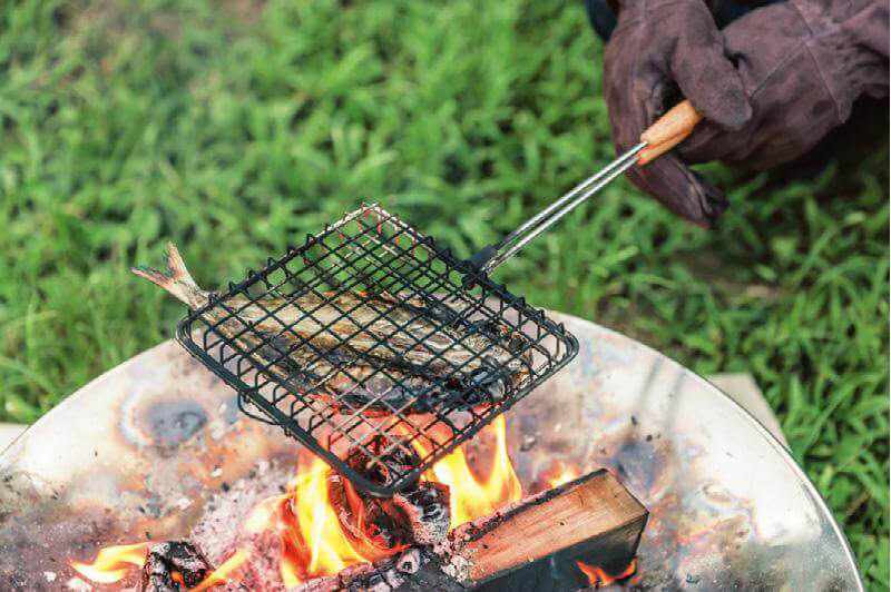 グリルバスケットクッカーを使って魚を焼くことも。