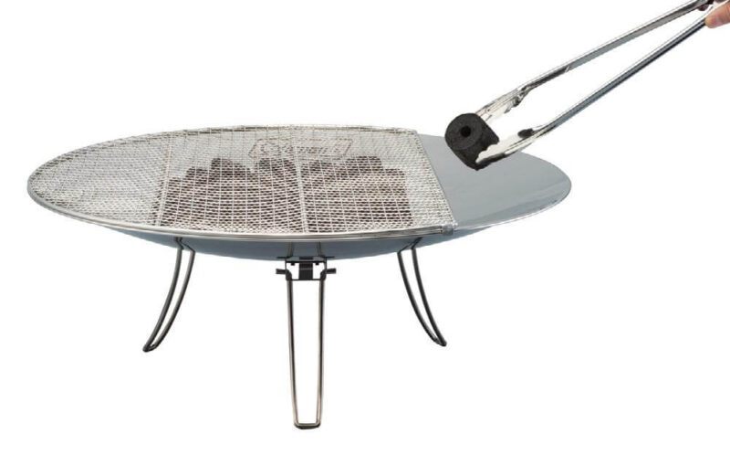調理に使える付属の焼き網が便利。焼き網をのせたまま炭の継ぎ足しもしやすい。