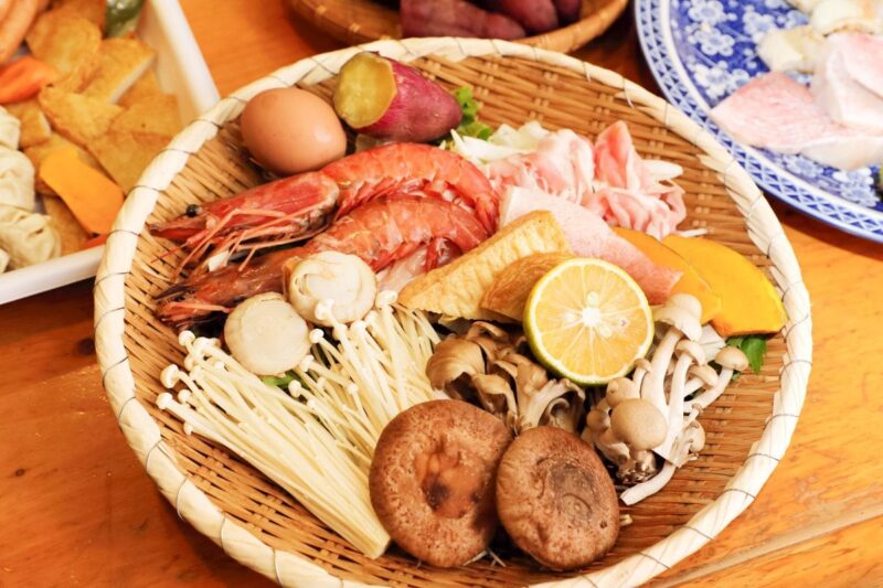 好きな食材をカゴに盛ったら、湯治宿である大黒屋旅館の地獄窯へ向かう。「地獄蒸し」とは温泉蒸気で蒸し上げる鉄輪(かんなわ)温泉ならではの食文化だ。
