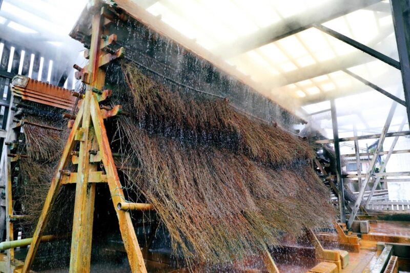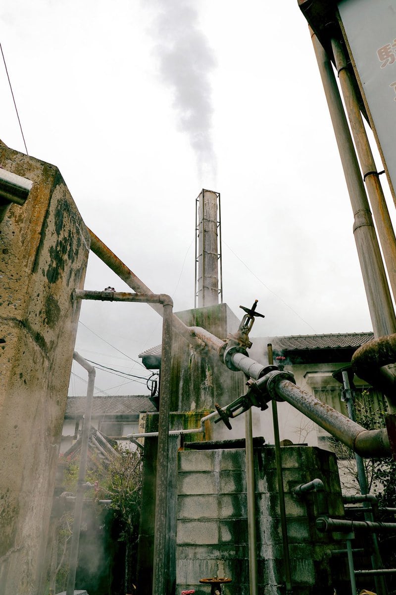 鉄輪(かんなわ)温泉の源泉は98℃と超高温。温泉成分を薄めてしまう加水は行わず、竹製の冷却装置で温度を下げるのだとか。