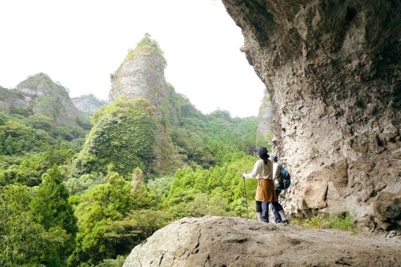 大分県の北東部に位置する自然豊かな国東(くにさき)半島。今なお10年に一度、六郷満山寺院の僧たちが歩く修行「峯入り(みねいり)」の道をベースとしたコースを歩く。