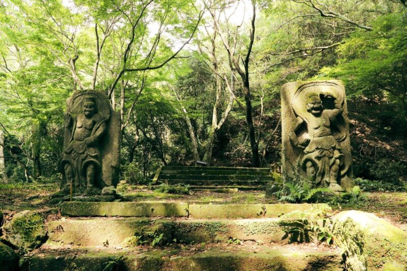 一枚岩に半肉彫りされた仁王像や国東塔など、見所がたくさん。
