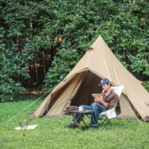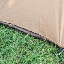 軽量で丈夫な75Dポリエステル生地を使用したテックスファイバーのフライシートは、コットンのような風合いのよさと、ポリエステルの優れたメンテナンス性が融合した画期的な素材。ティピーやパップテントとの相性が抜群で、自然と調和する素材感、佇まいは美しいのひと言。どちらのテントにも巻き上げ可能な全周スカートを装備するので、オールシーズン使えるのもポイントが高い。もちろん、ソロだけでなくデュオキャンプにも対応するので、少人数で気ままに楽しみたいキャンプにもってこいだ。