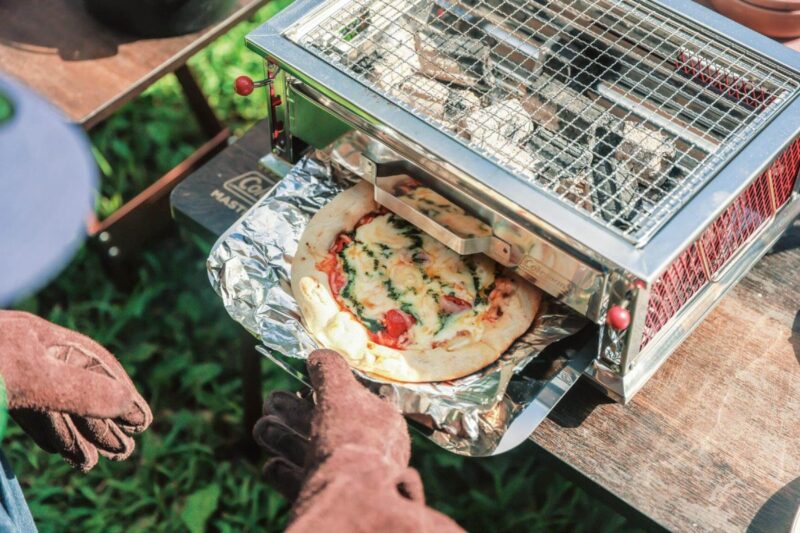炭の熱を使って温める簡易的な構造ながら、冷凍ピザだけでなくトーストを焼くこともできる。アイデア次第でもっと楽しめそうだ!