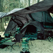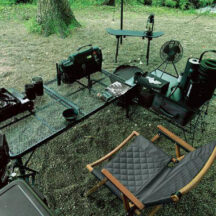テントやタープといった大型ギアだけでなく、チェアやクーラーボックスなどもサンドカラーのワントーンに統一している。クーラーボックスはシマノのヴァシランドVL40L、チェアはワンティグリスのハイバックチェア。