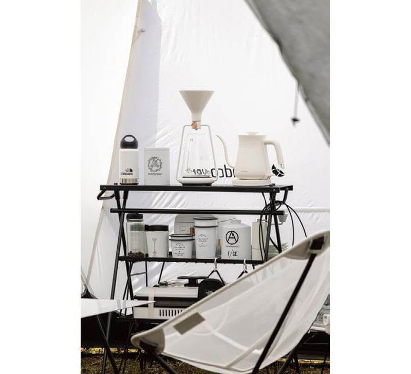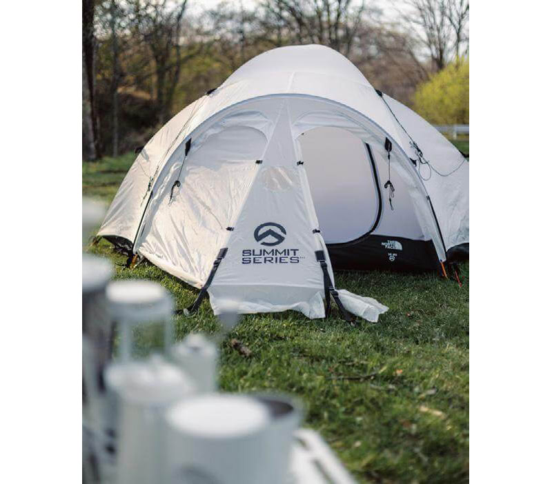 汚れやすいとの印象から、白ベースのアウトドアギアは希少アイテム。そんな数少ないホワイトギアで眩いばかりのサイトを構築。