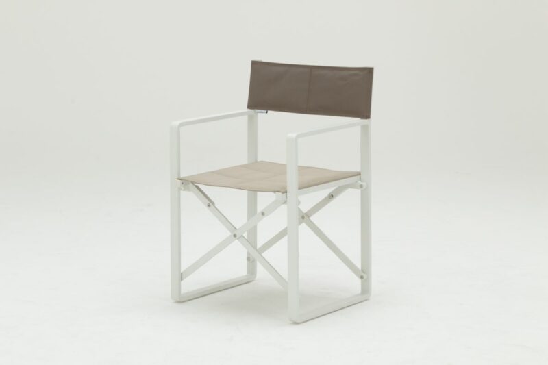 〈HELLY HANSEN〉とのコラボによって誕生したディレクターズチェア。クッション性の高い座面により長時間座っていても⼼地よさが続く。シンプルながらデザイン性や質感も高く、家庭のリビングやテラスにも似合う。