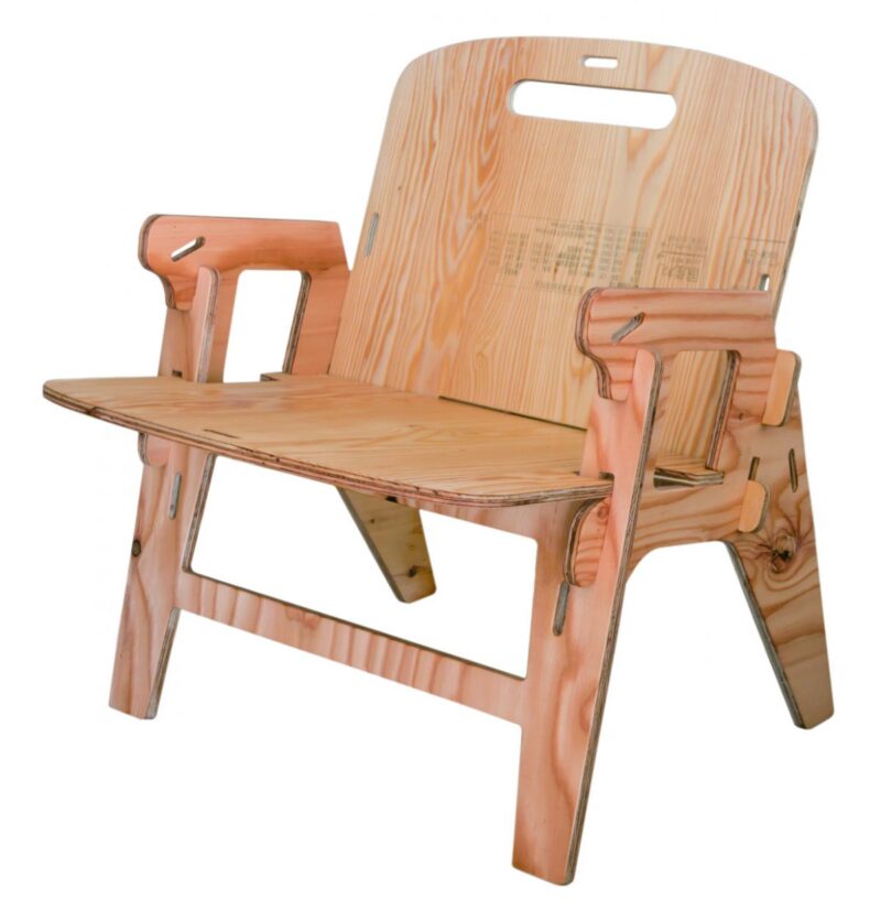 板からできた組み立て式アウトドア家具〈YOKA〉シリーズの代表作とも言える、長時間座っても疲れない角度を研究したチェア。パーツには金属を一切使わず、工具を使用せずに分解・収納、持ち運びが可能。