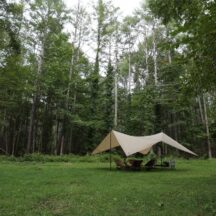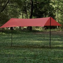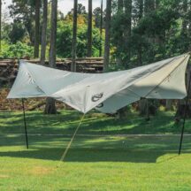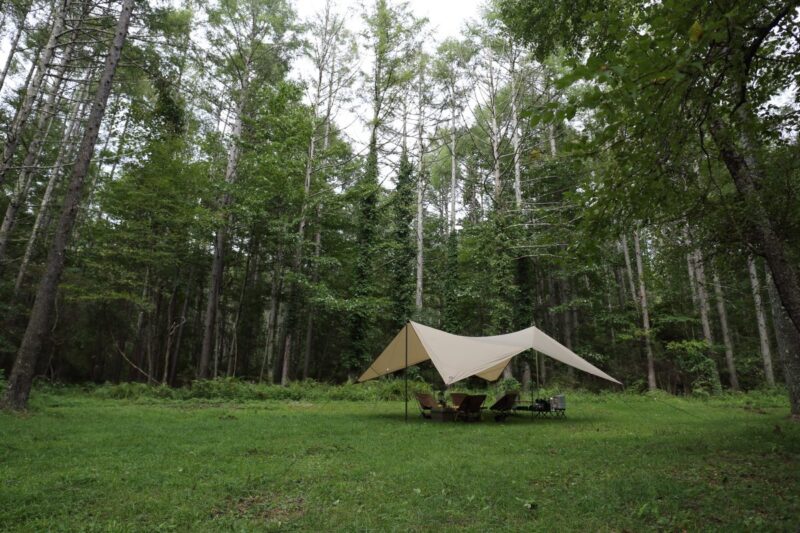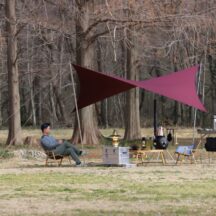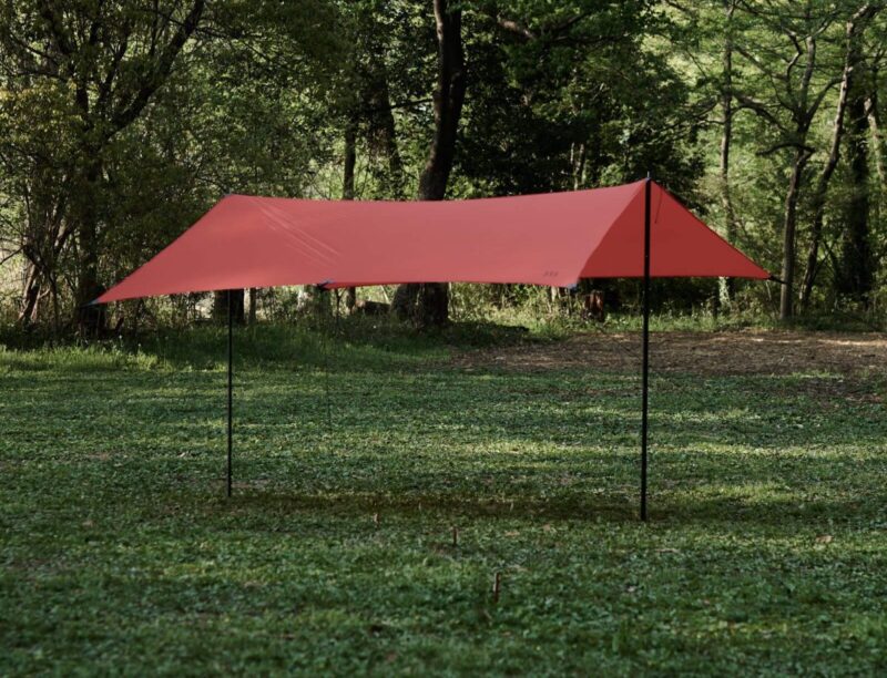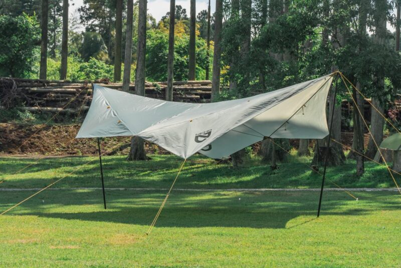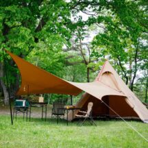 長繊維であるポリエステルやナイロンを使用したタープは薄手生地でも強度を得られやすく、ゆえに軽量で設営した際のシルエットの美しさを表現しやすい。ソロキャンパーでミニマル派、またはグループキャンパーで大型タープが必要な場合、軽量でコンパクトになりやすいポリエステルやナイロン生地採用のタープはその選択肢となり得るだろう。
