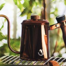 温度計が付属されたハンドドリップ専用ポット。左右どちらの手でもドリップしやすく湯量が一定で安定する!