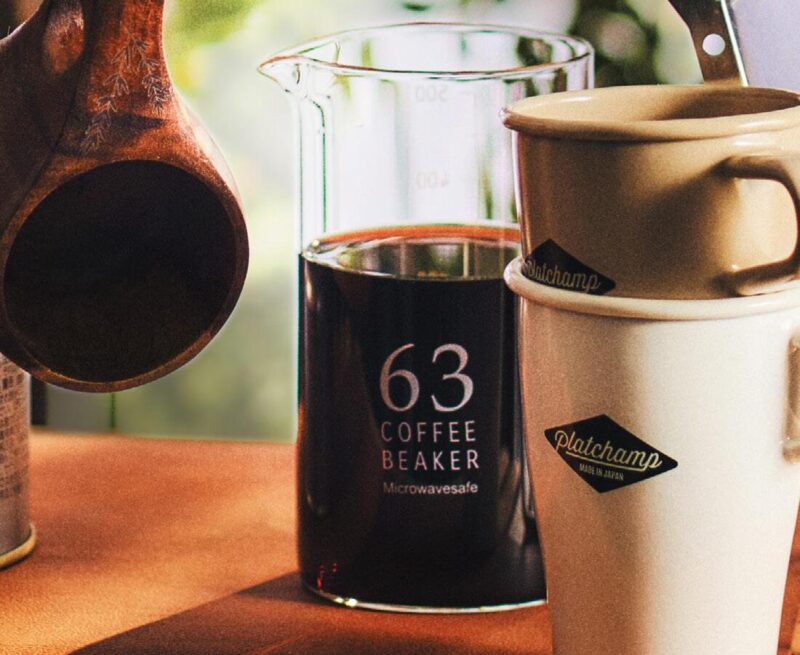 複数人分を抽出する際に活躍するガラス製ビーカー。注ぎ口はキレがよく液ダレしにくい形状だ。