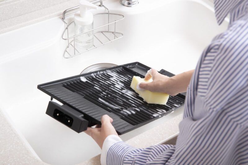 プレートは本体から取り外して洗い流しができるので、使用後のお手入れもカンタン!調理中の油はねが少ないので、テーブルの後片付けも楽チンなのがいい。