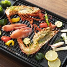 新たにラインナップしたこちらのワイドタイプは、5~6人で使うのにちょうどいいサイズ。横幅47cmの広々としたプレートの中に、3種類の調理スペースを設けることで、さまざまな食材を同時に調理することができる。魚やエビなど大きな食材も調理できるから、丸ごと焼けば一気にパーティ感がアップ!