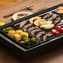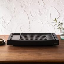 まずひとつめにご紹介するのが、「減煙電気焼肉器(ワイドタイプ)」。おうち焼肉の課題であった調理中の煙を約85%、油はねを約97%削減(同社製品比)した減煙電気焼肉器は、室内でも気兼ねなく焼肉やBBQが楽しめる。
