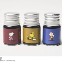 インクは秋を感じさせるくすみカラーが楽しめる全3色をセット。スヌーピーのボトルには臙脂(えんじ)色、ウッドストックのボトルには茶色、チャーリー・ブラウンのボトルには紺色のインクが入っています。手書きで心温まる文字が書けます。