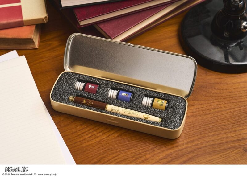 気になる万年筆は、スヌーピーたちが「手紙」を持ったり書いたりしているアートのデザインにご注目。思わずこの万年筆を使ってメッセージを手書きしたくなる、そんな万年筆セットに仕上がっています。