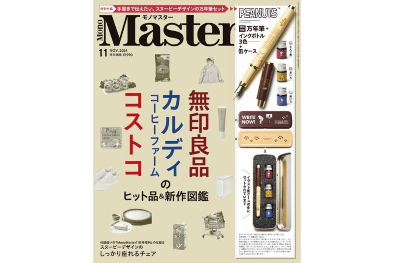 「スヌーピーデザインの豪華セット付録」カラーインク3色分が付く“万年筆セット”、家でも外でも重宝する“携帯チェア” アナタはどちらを選ぶ?『MonoMaster 2024年11月号』