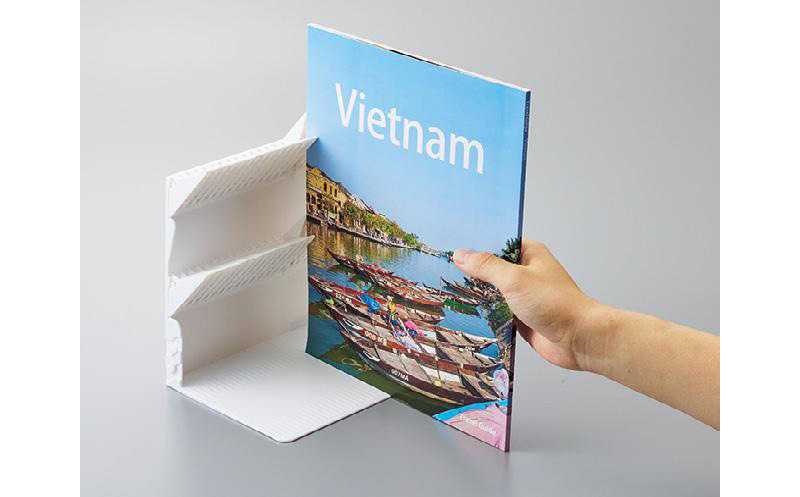 本を手前側から差し込むとストッパーが上がり、両サイドのストッパーが差し込んだ本をキープ。抜き取っても倒れない仕組みに。