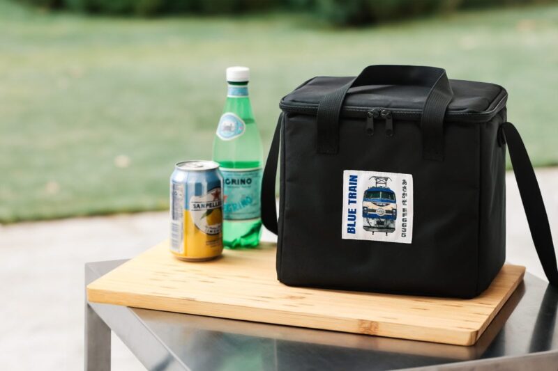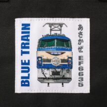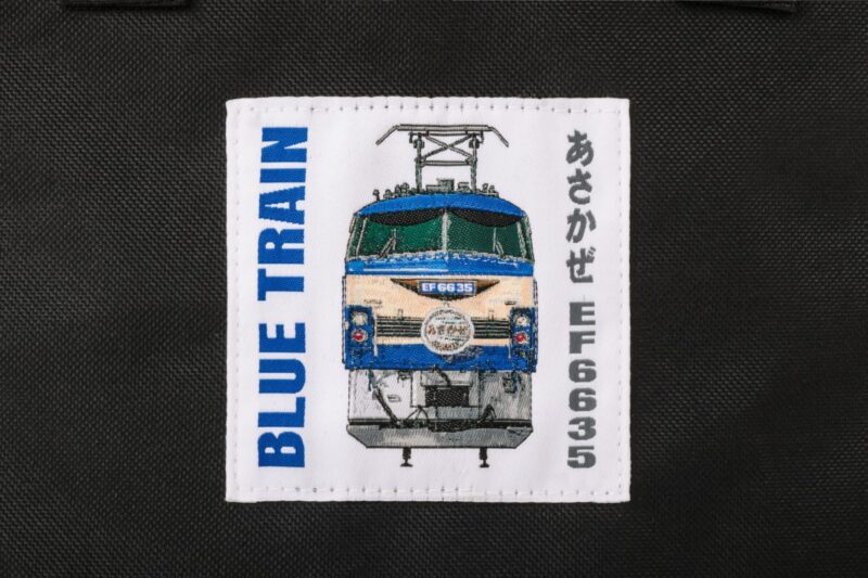 保冷バッグの正面中央には寝台列車文化を作り上げたブルートレインの花形「EF66形あさかぜ」を、クラフト感あふれる渾身の織りネームで表現。