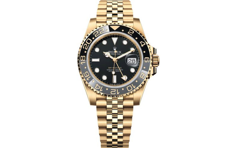 両方向回転の24時間入りベゼルにより2つのタイムゾーンの時刻を同時に表示可能。自社製造の18ctゴールドケースは高級感を生み、5連のジュビリーブレスレットが快適性も備えることで、クラス感のあるGMTモデルが完成した。ケース径40mm、自動巻き、100m防水。